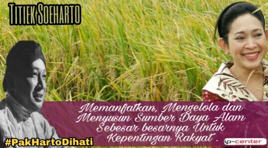 #PakHartoDihati Ya itulah yg terjadi, alam seakan ikut gembira kala itu. Swasembada pangan terwujud. Sekarang kerinduan itu mengalir dalam darah mbak @TitiekSoeharto yg sangat peduli dg pertanian dan lingkungan pic.twitter.com/JiBi2LgNU3